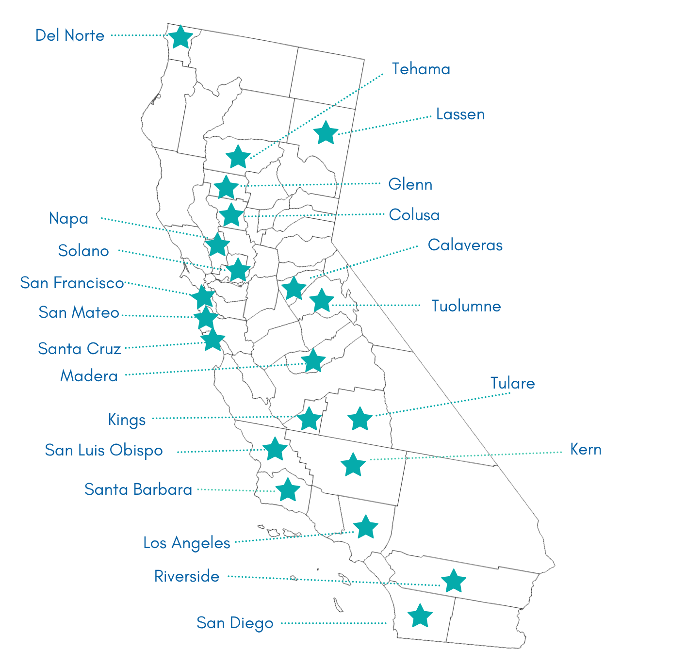 ACTS offers two types of partnerships 1) with child welfare counties and 2) with child welfare counties and their behavioral health county partners. ACTS partners with motivated and engaged leaders who have an interest in working towards specific trauma-informed goals. In three phases over a course of 9 or 15 months, the ACTS team partners with counties to advance trauma and evidence-informed system change. Our map shows the counties we have partnered with from across the state. Each partnership looks a bit different based on the goals, ongoing initiatives, and vision of the county. The ACTS project provides training, coaching, resources and technical assistance that’s flexible to support each counties vision for advancing trauma-informed change.